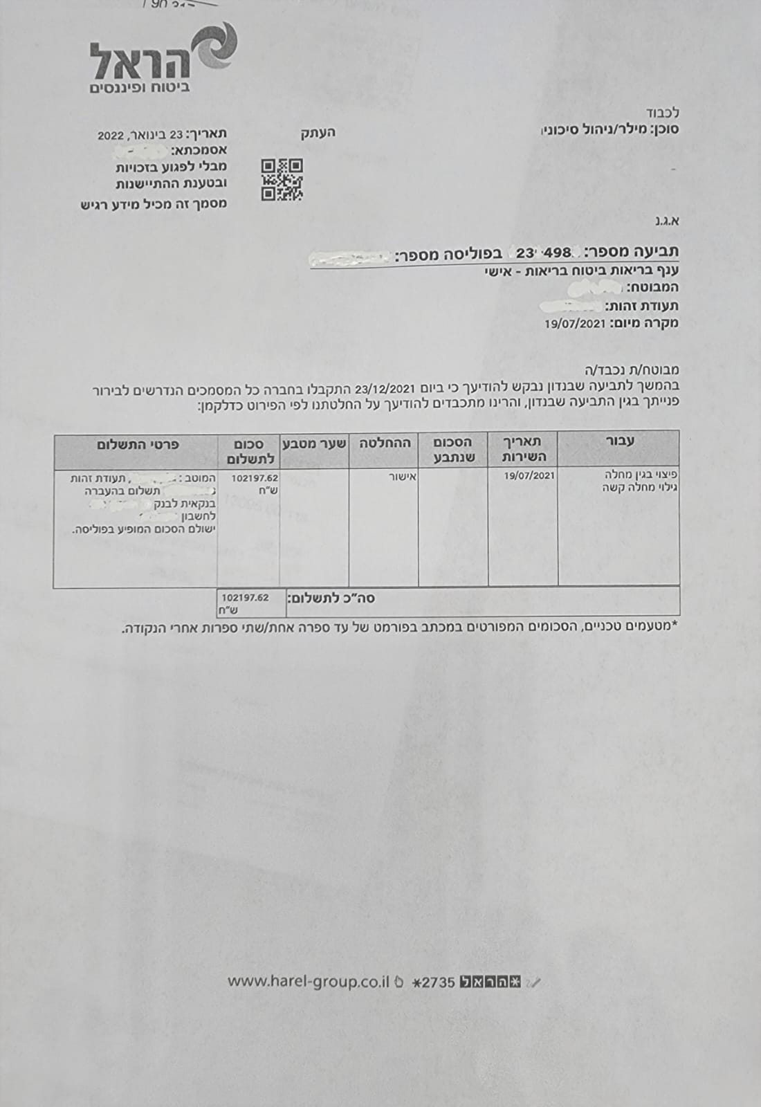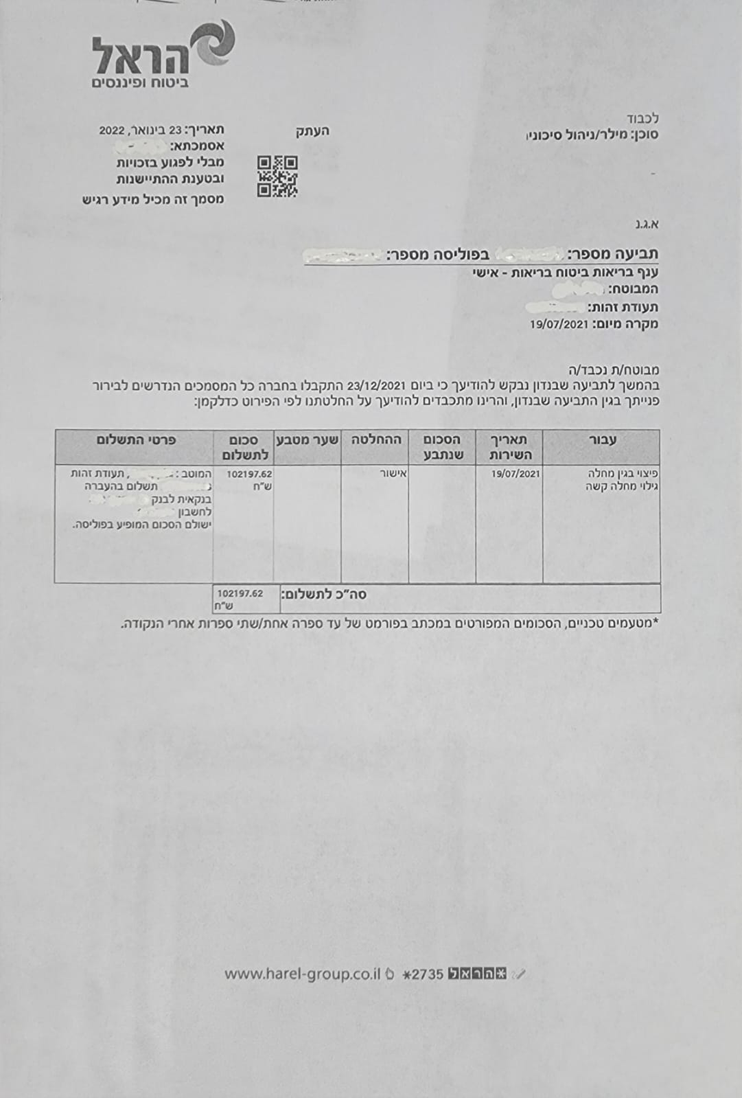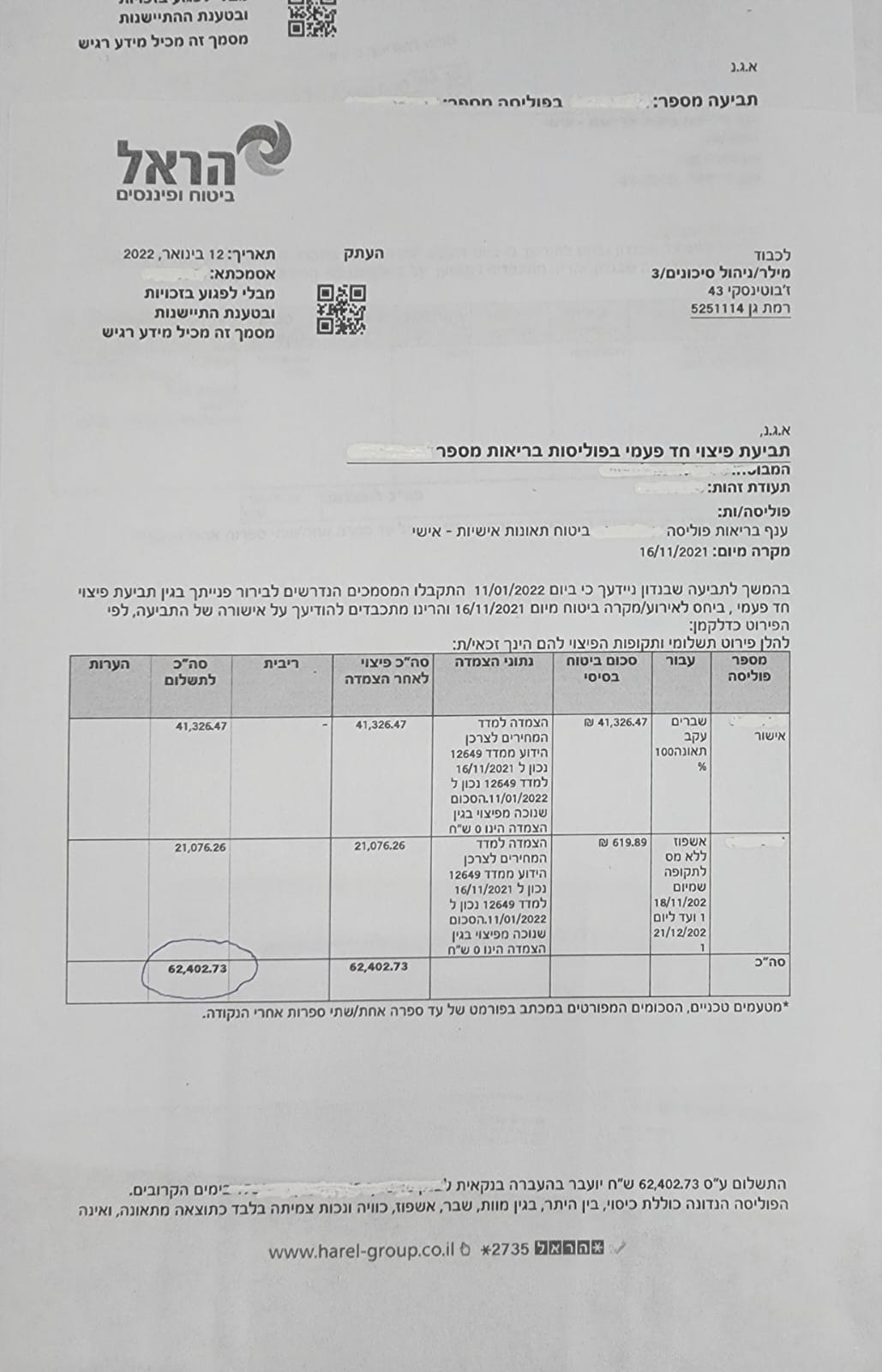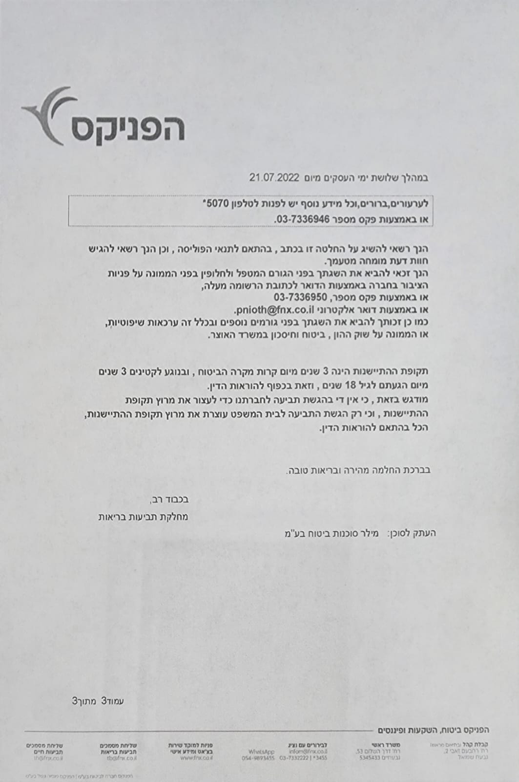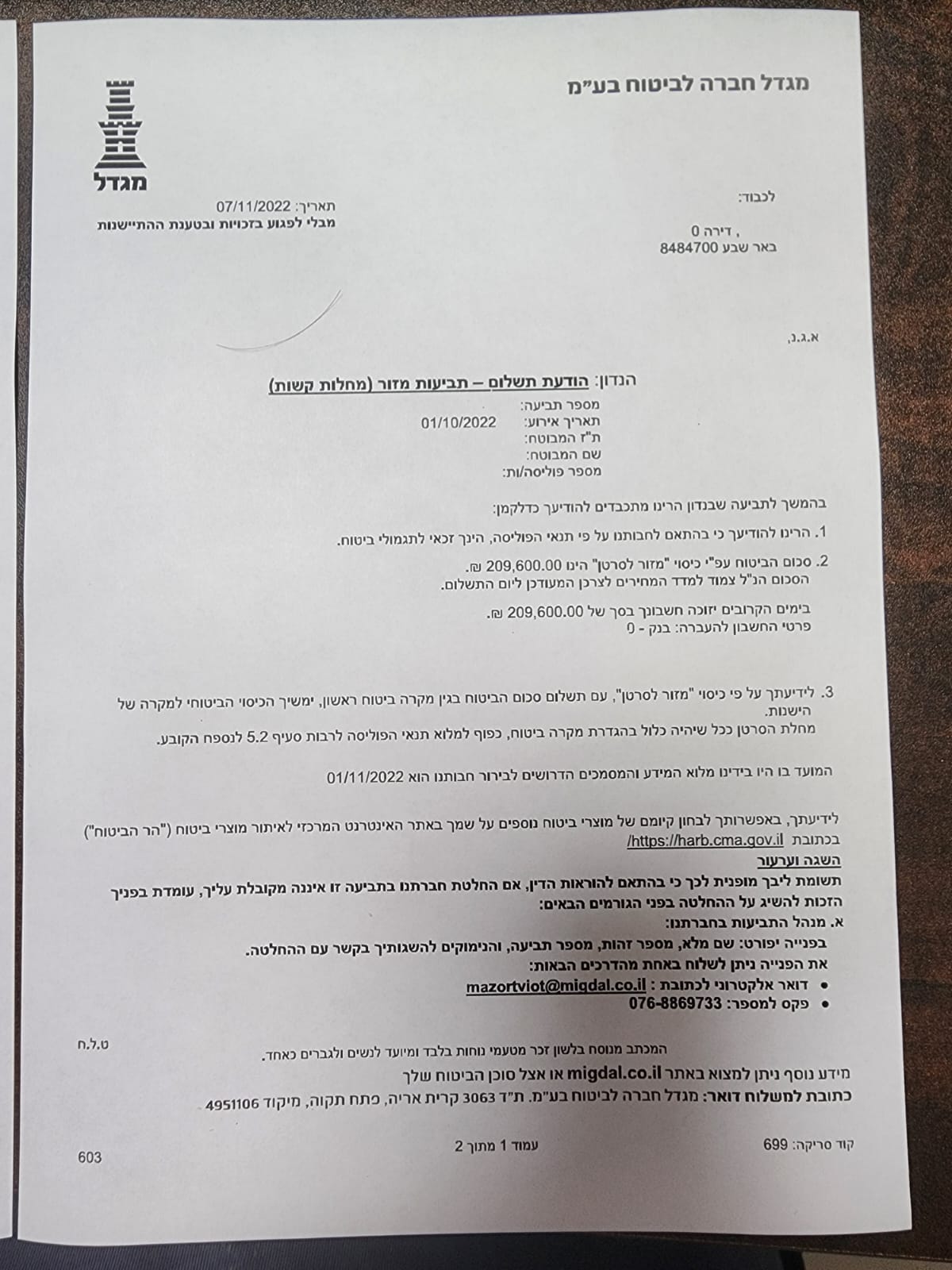 Уважаемые бывшие и будущие клиенты компании Мигдаль! Я, Елена Ян.вынуждена была обратиться к своему сохэну битуах Евгению, в связи с обнаружением у меня рака груди.После операции , ряда процедур и собранных документов, Евгений очень помог и отправил все в кампанию, ровно через месяц я получила положенную сумму, Благодарю всех за мобильность, честность и профессионализм, ЕВГЕНИЮ здоровья и силы, продолжайте помогать людям