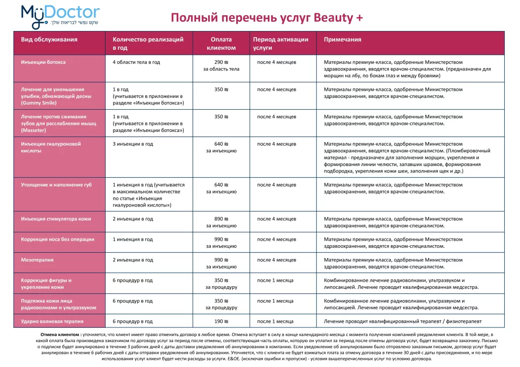 Полный перечень услуг Beauty +